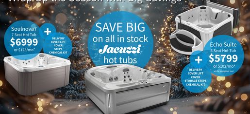 Warm up your season with unbeatable deals on Jacuzzi® Hot Tubs. For a limited time, enjoy massive holiday savings and bring home the comfort, relaxation, and luxury you’ve been dreaming of. Don’t miss your chance to make this holiday unforgettable—shop now before the season ends